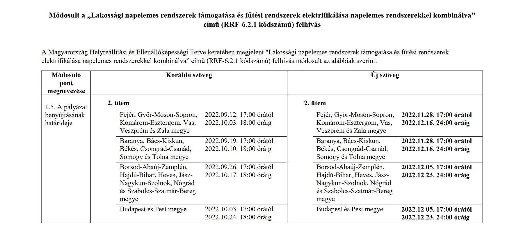 Módosult az RRF-6.2.1 „Lakossági napelemes rendszerek támogatása és fűtési rendszerek elektrifikálása napelemes rendszerekkel kombinálva” című felhívás